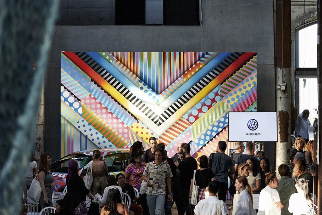 Curation: We strategically selected Jason Woodside, a renowned artist whose vibrant and playful style perfectly complemented Volkswagen's brand identity and the dynamic environment of Carriageworks.